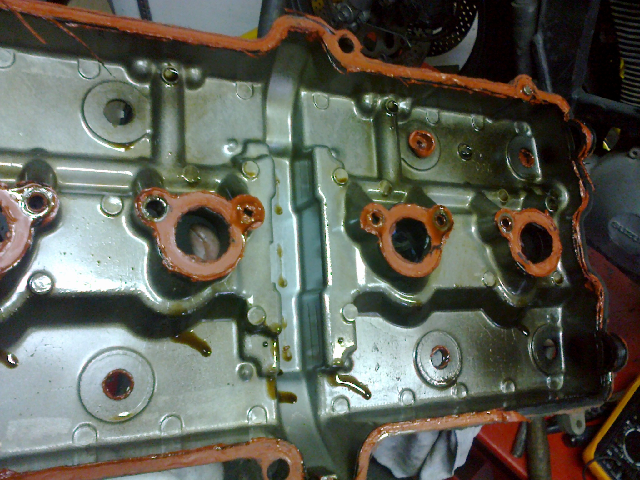 Szelepfedél tömítés: a 90-es évektől kezdtek a motoroknál gumi szelepfedél tömítéseket használni a gyártók. Szelephézag állításnál (ami csavaros állítású motoroknál 6000 és 10000 km-enként, lapkás állításúaknál 24000 km-enként esedékes) meg kell bontani a szelepfedelet. Tehát jó esetben 2x 3x már le volt véve. A tömítés extrém hőhatásnak van kitéve, mivel közvetlenül érintkezik a motorolajjal. Egy 15 évnél idősebb motoron nagy valószínűséggel cserére szorul (hivatalosan minden megbontás után minden tömítés csere!)